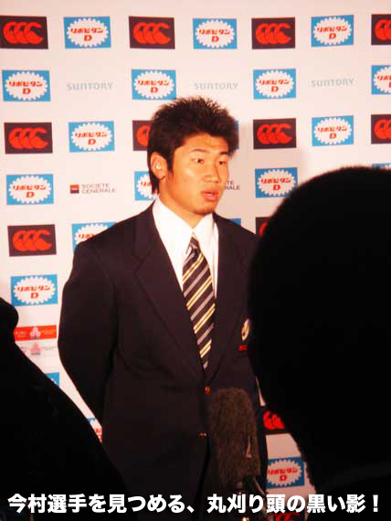 下し好発進をきったエリサルドJAPAN。しかしエリサルドヘッドコーチは「日本代表の歴史は知らないが、最悪の内容だった!特に前半!」そんな厳しいコメントも聞こえてきた闘いだった。 そんな中JAPANデビューを飾ったラガーマンが居た、昨年史上最強と謳われた早稲田大学の新4年生今村雄太! その力強いランニングを、前早稲田監督清宮克幸さんは「馬!」と評した、、まさにその逞しさはアメリカの大草原を駆けるムスタングを思わせます。 代表デビュー戦もそのムスタングランで存在感を見せ付け、自らデビュートライも奪った今村選手。 試合後、ライトに照らされTVカメラの前でインタビューに答える今村選手を、カメラの陰からジ〜ッと見守る熱視線が!? |